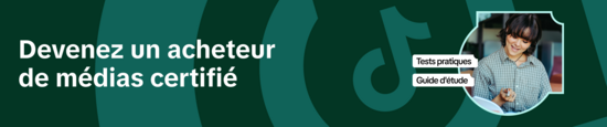 Cet examen surveillé de 110 minutes évalue vos connaissances sur l'ensemble du processus d'achat de médias. Conçue pour les professionnels ayant au moins un an d'expérience pratique avec TikTok Ads Manager, cette certification valide votre expertise et vous positionne comme un leader de confiance dans le domaine de la publicité numérique.