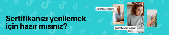 TikTok Medya Satın Alma Uzmanı Sertifikanız, sınavı geçtiğiniz tarihten itibaren iki yıl geçerlidir. Sertifika yenileme, belgenizi güncel tutar ve TikTok reklam ürünü ile ilgili en yeni özellikler, en iyi uygulamalar ve politikalar hakkında bilgi sahibi olduğunuzu gösterir. Belgenizin süresi dolmadan önce sertifikanızı yenilemezseniz tekrardan tam kapsamlı sertifika sınavına girmeniz gerekir.
